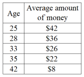 Question 15: The table shows the results of a survey on the average amount of money d, in dollars, consumers would be willing to spend on a product and their corresponding age a, in years. Which equation could represent this linear relationship?