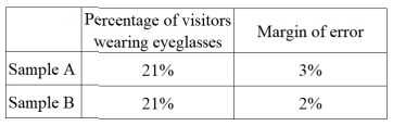 Question 30: If the associated margin of error was calculated the same way for both samples, which of the following is the most likely reason that the result for Sample A has a larger margin of error?