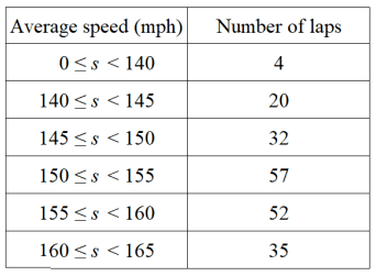 Question 34: The table gives the average speed s, in miles per hour (mph), of each lap around the track for one racing team. For how many laps was the average speed greater than or equal to 150 mph?