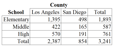 Question 7: A public middle school will be selected at random from the two counties. What is the probability, to the nearest hundredth, of selecting a school in San Diego County?