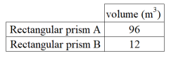 Question 19: Rectangular prism A is similar to rectangular prism B, where the longest side of rectangular prism A corresponds to the longest side of rectangular prism B. The table gives the volumes, in cubic meters (m3), of the two prisms. The length of the longest side of rectangular prism A is 6 meters. What is the length, in meters, of the longest side of rectangular prism B?