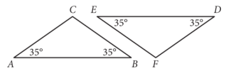 Question 9: Triangle ABC and triangle DEF each have two angles measuring 35°, as shown. Which of the following additional pieces of information is sufficient to prove that triangle ABC is congruent to triangle DEF ?