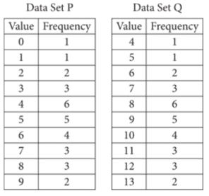Question 19: Which statement best compares the mean a and standard deviation b of data set P with the mean c and standard deviation d of data set Q?