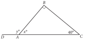 Question 4: In triangle ABC , \(\overline{CA}\) is extended to point D. What is the value of y?