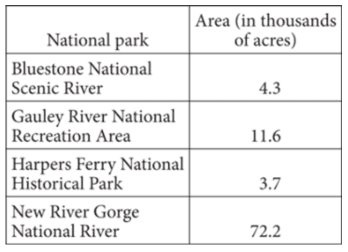 The table shows the approximate land areas, in thousands of acres, of four national parks in West Virginia.